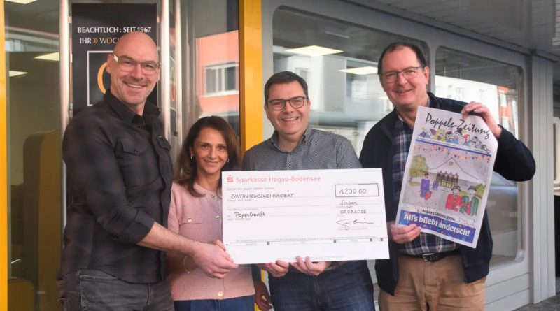 „Schon seit vielen Jahren wird die traditionelle Poppele-Zeitung der gleichnamigen Zunft im Singener Wochenblatt produziert. Auch in diesem Jahr konnte wieder ein großer Spendenbetrag aus einem bestimmten Anteil aller Anzeigen hierin für die Poppele-Zunft generiert werden.